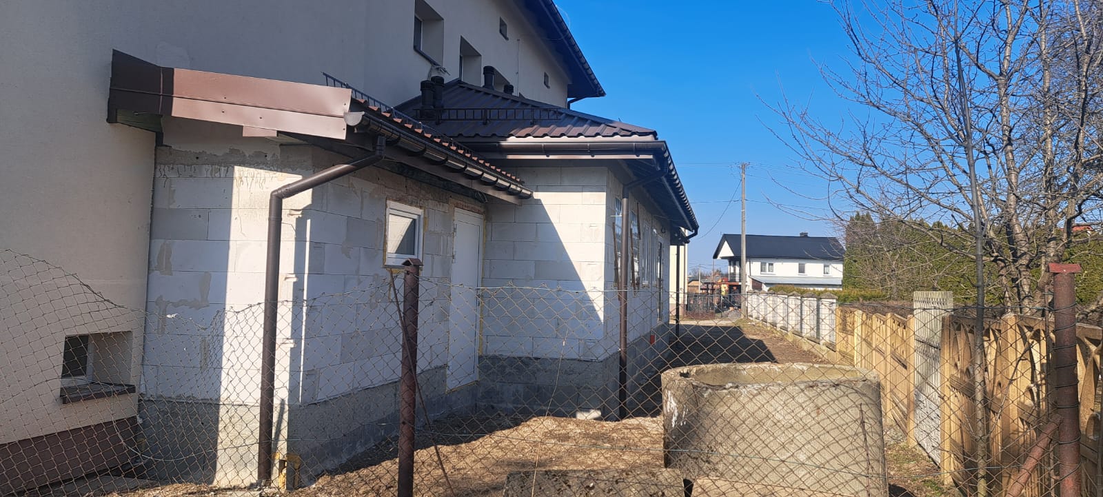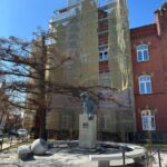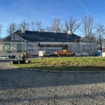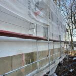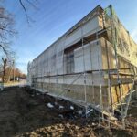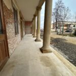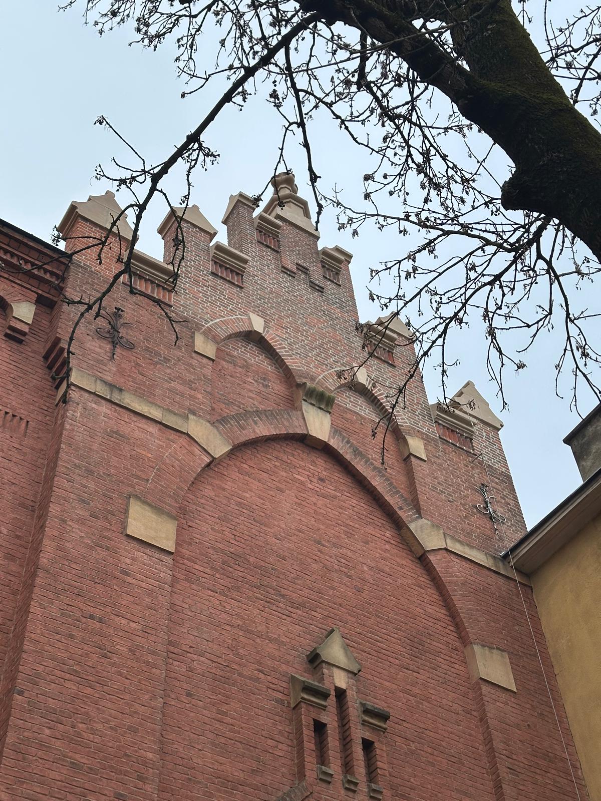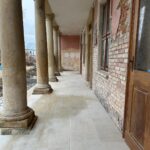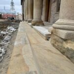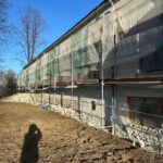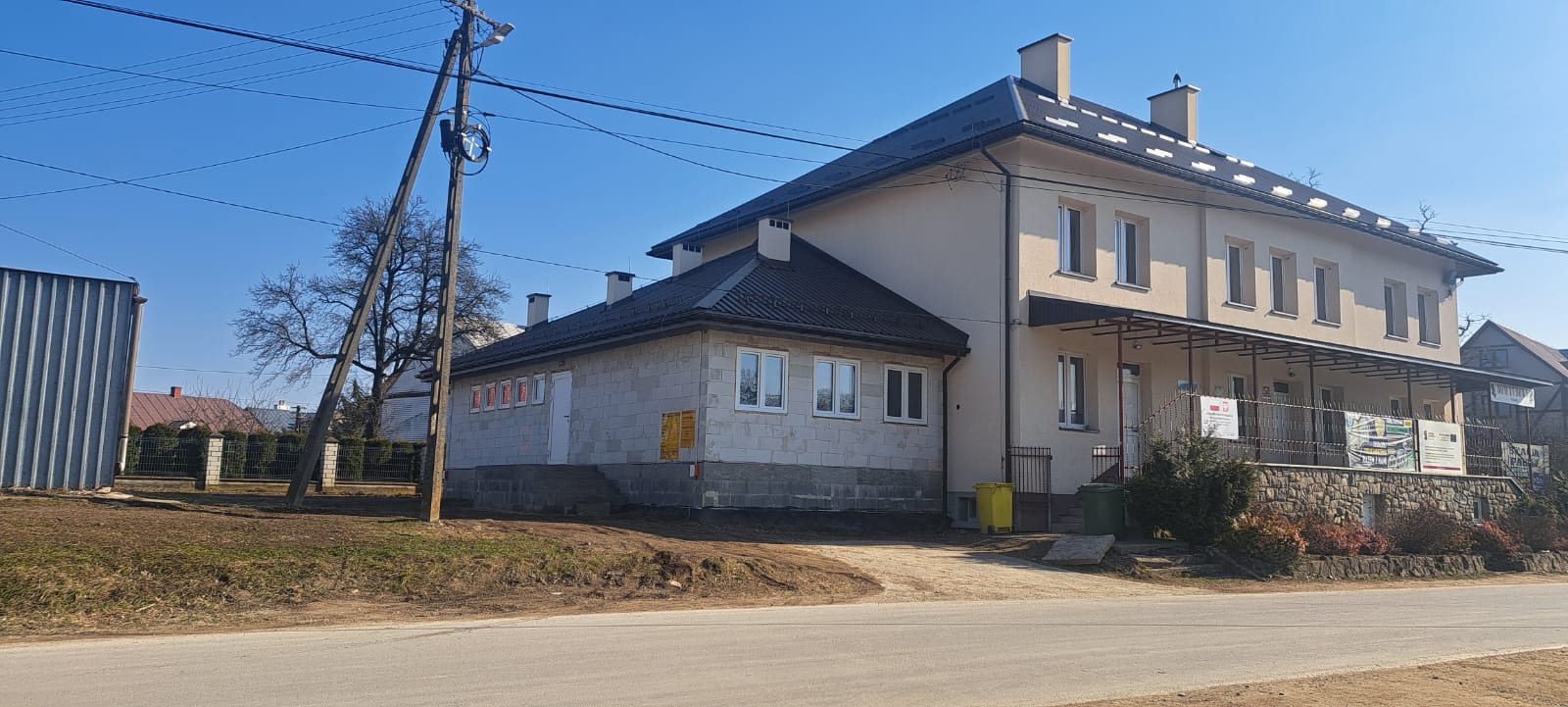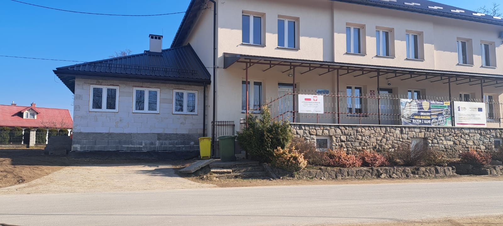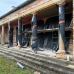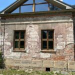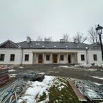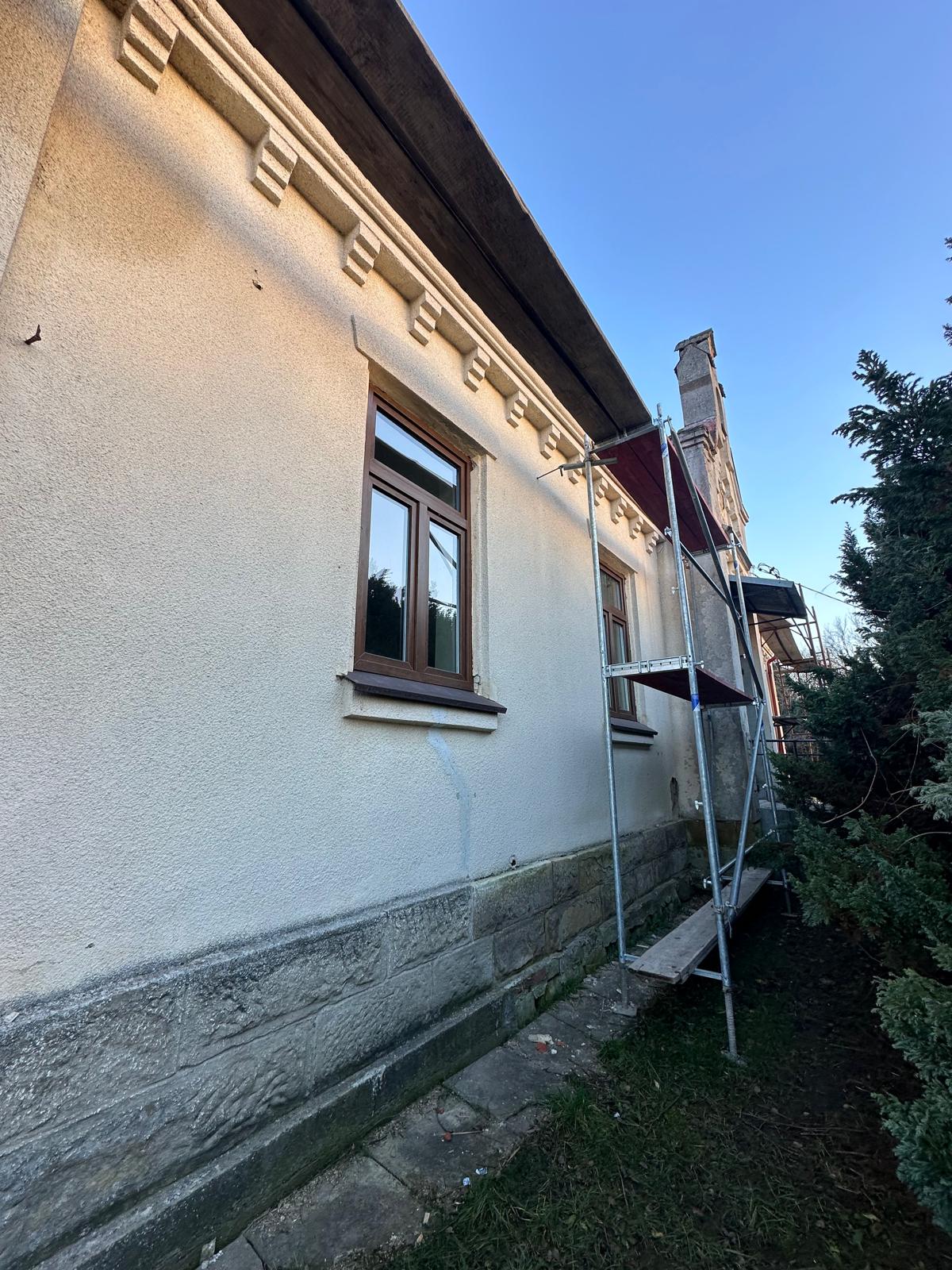 Roboty budowlane i konserwatorskie przy zabytkowym XIX‑wiecznym dworze Pilińskich, zakres prac: konserwacja kamiennego cokołu z uzupełnieniem szachtów okiennych, renowacja detali architektonicznych i kolumnady, odnowienie