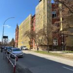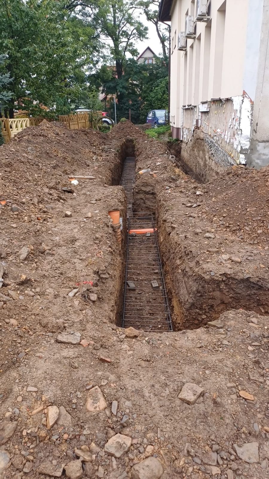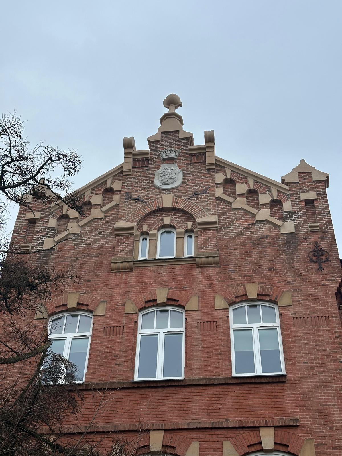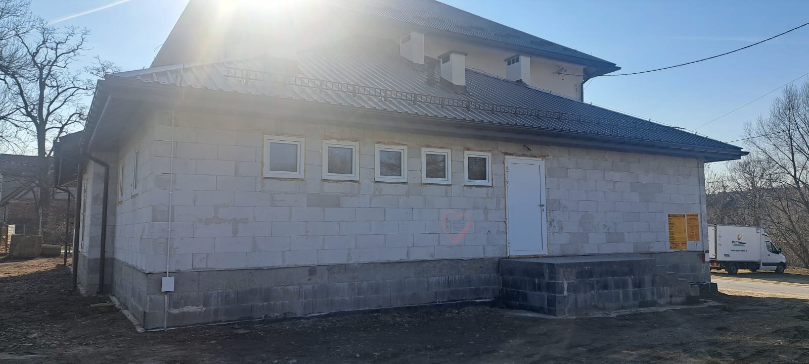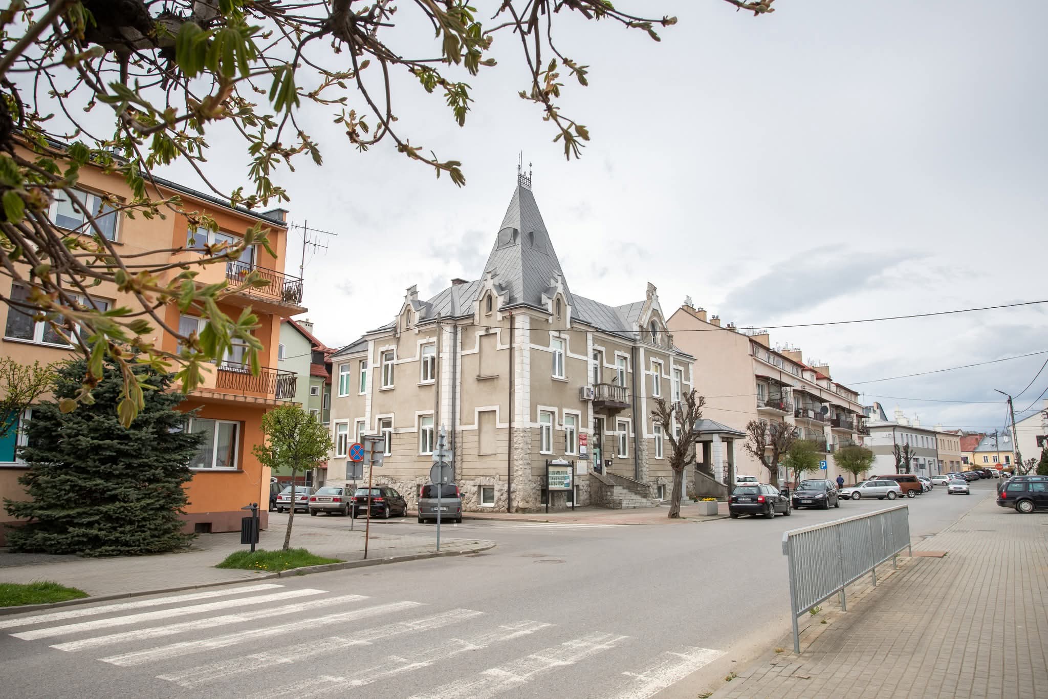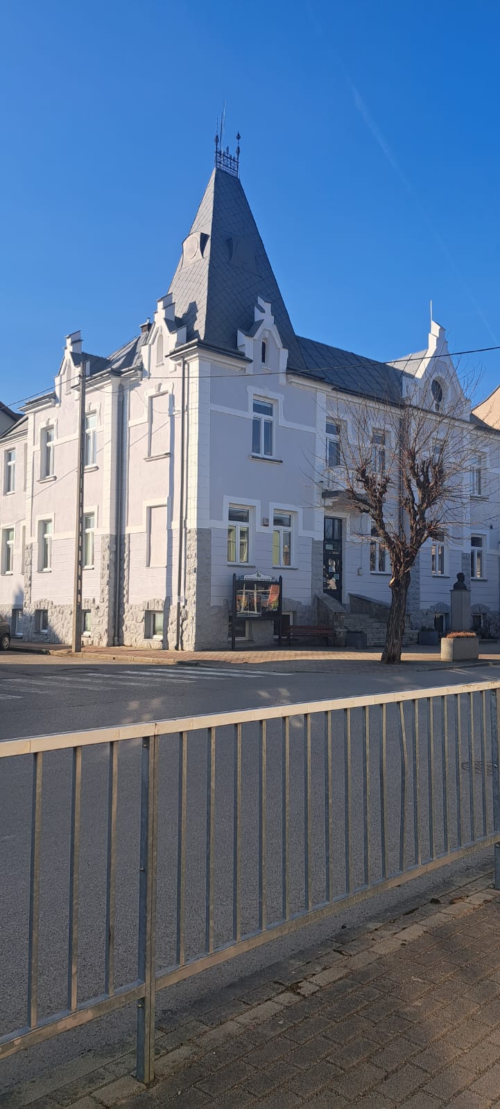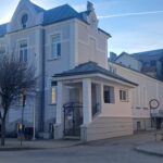 i uzupełnienie tynków elewacji, oczyszczenie i malowanie stolarki, wykonanie nowych schodów zewnętrznych z okładziną kamienną i balustradami, wykonanie instalacji oświetleniowej z lampami parkowymi i oświetleniem podcienia, utwardzenie obejścia i dojazdu, uporządkowanie otoczenia, wykonanie nowych nasadzeń i trawników, montaż ławek, koszy i elementów małej architektury.